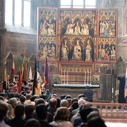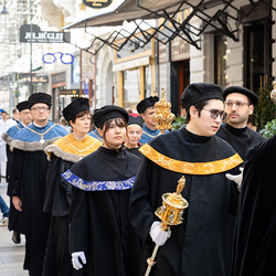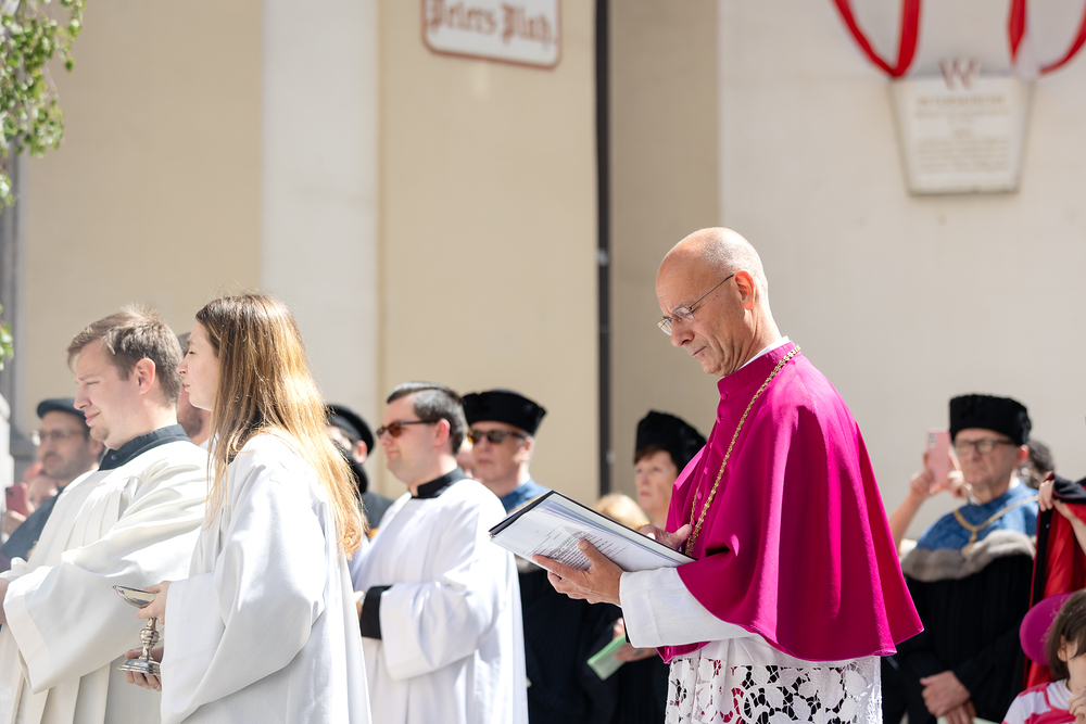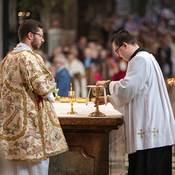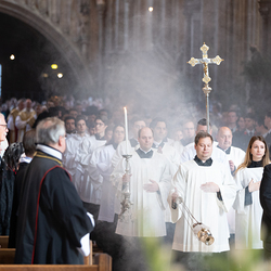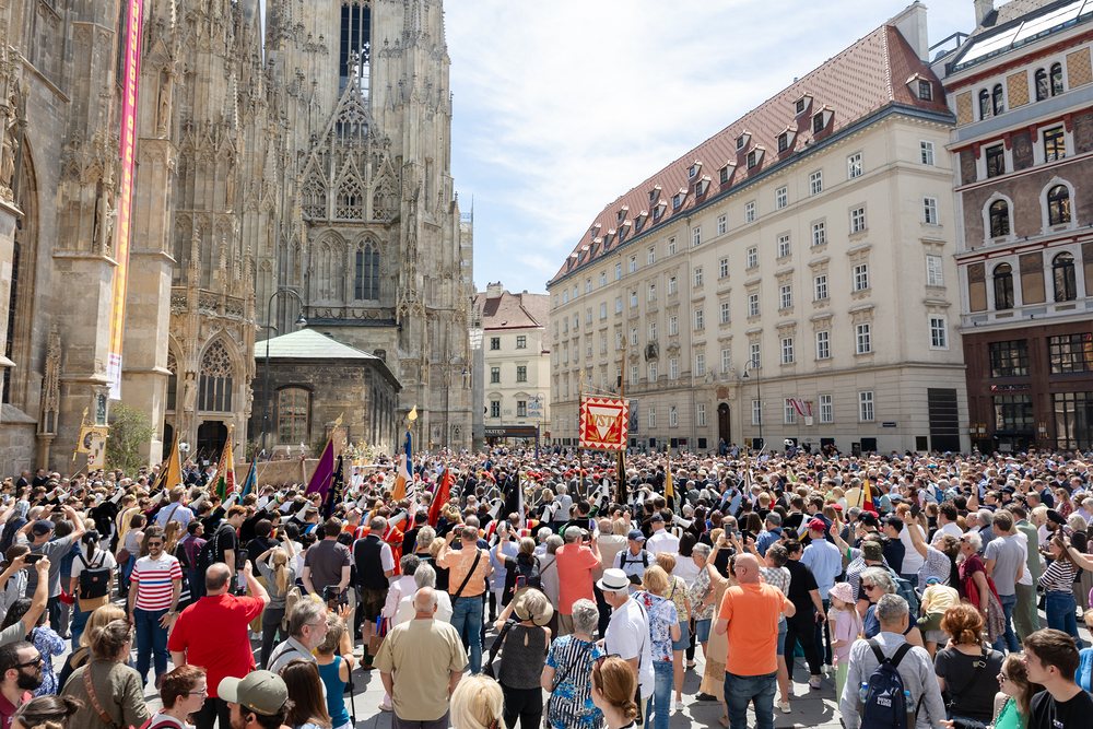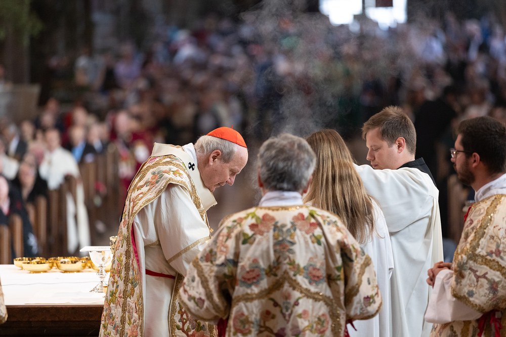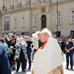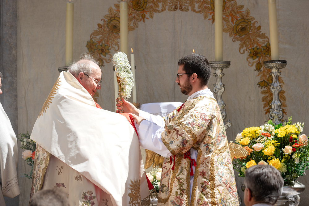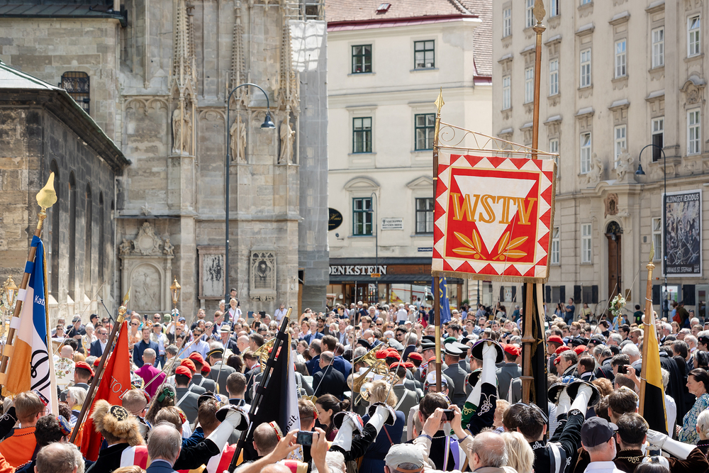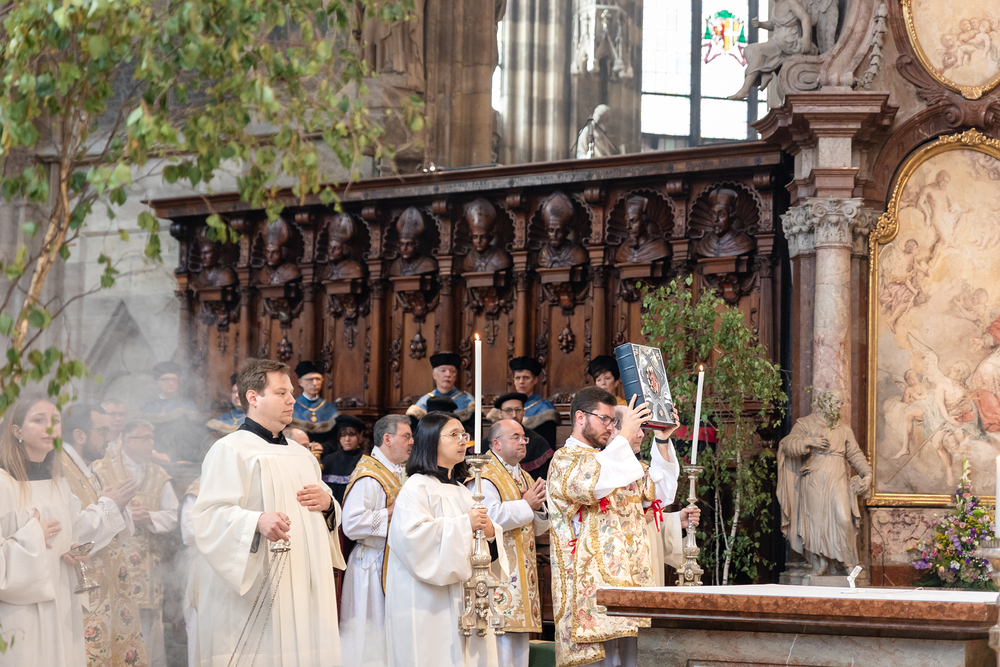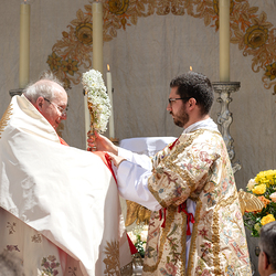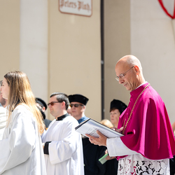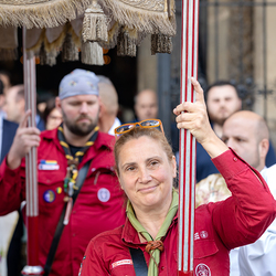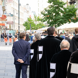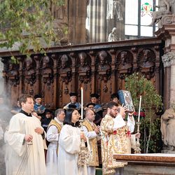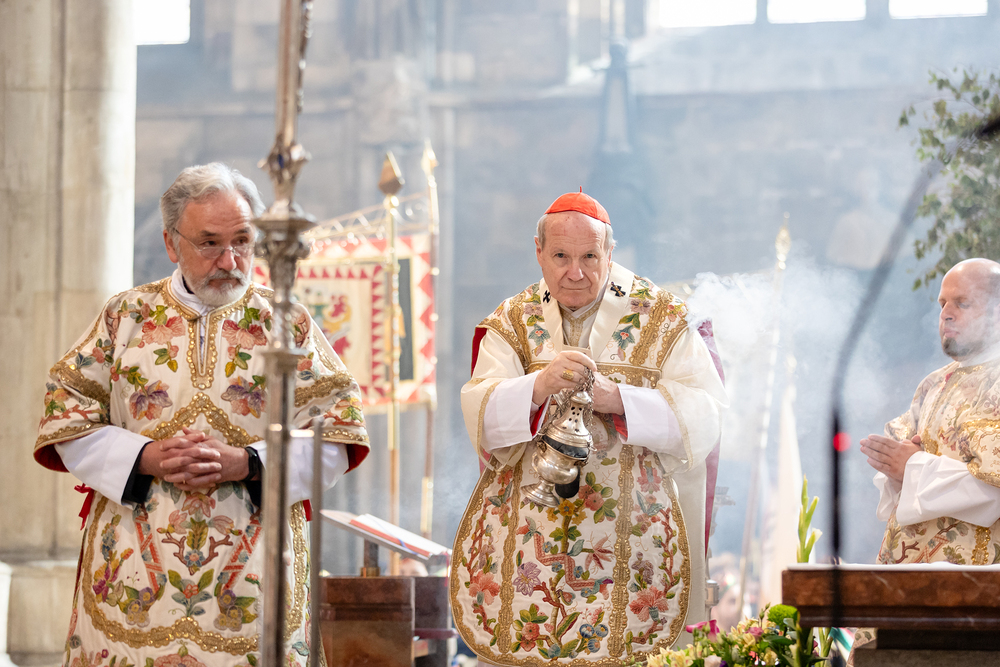 Zu Fronleichnam bringen wir Katholiken öffentlich unseren Glauben zum Ausdruck, dass Gott in Brot und Wein mitten unter ihnen ist. Als sichtbares Zeichen wird eine reich verzierte Monstranz mit einer geweihten Hostie in feierlicher Prozession durch die Straßen getragen.