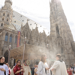 Erzdiözese Wien/ Schönlaub / Monstranz bei einer Fronleichnamsfeier